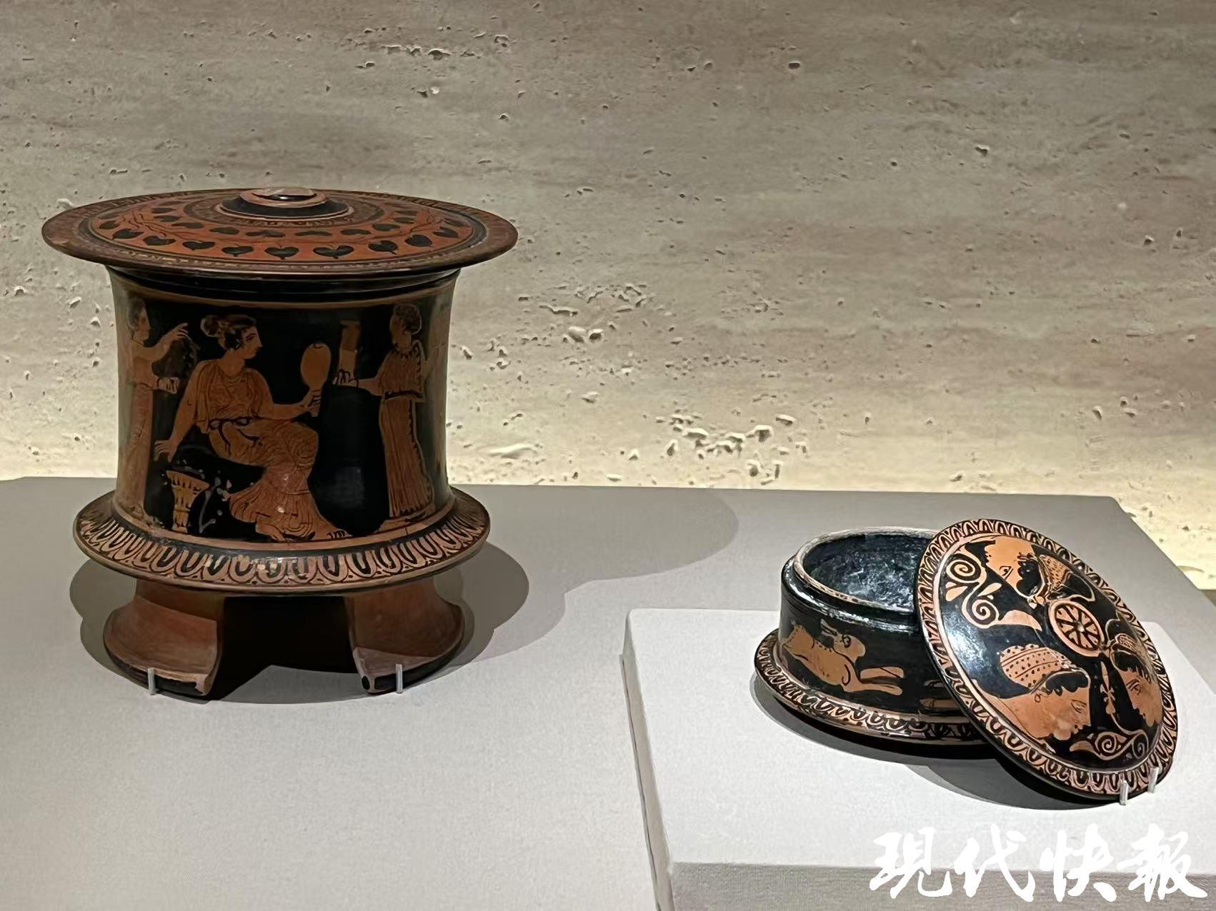“美的多元——古希臘的藝術(shù)與生活”中展出的黑底紅畫帶蓋化妝盒