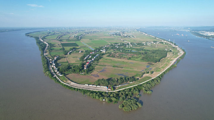 從江西省九江市江新洲洲頭鳥瞰江新洲(2024年7月4日攝,無人機(jī)照片)。
