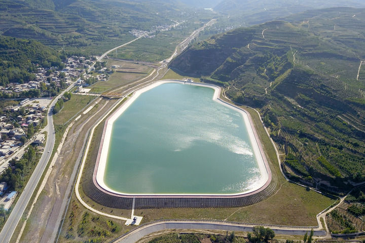 在甘肅省天水市拍攝的引洮供水工程楊家灣調(diào)蓄水池(2021年9月8日攝,無人機(jī)照片)。
