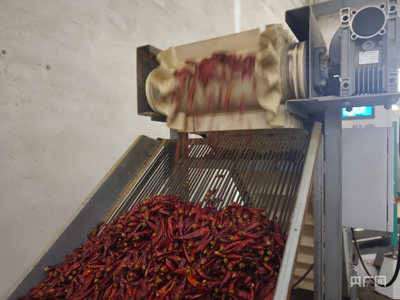 生產(chǎn)車間內(nèi)辣椒正在進(jìn)行機(jī)械化處理(央廣網(wǎng)記者 欒小琳 攝)