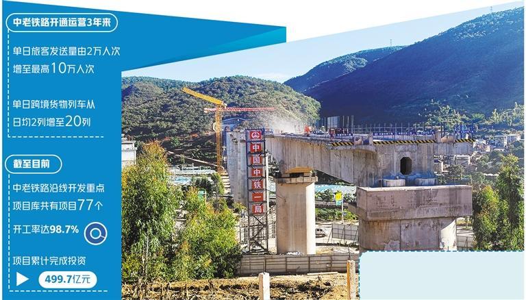 3年來,云南省搶抓中老鐵路機遇,以通道能力提升、物流樞紐建設(shè)、沿線產(chǎn)業(yè)開發(fā)和經(jīng)營主體培育為重點,切實打造一條開放發(fā)展的黃金道路。截至目前,中老鐵路沿線開發(fā)重點項目庫共有項目77個,開工率達(dá)98.7%,項目累計完成投資499.7億元,投資完成率超66.7%,對促進中老鐵路沿線開發(fā)發(fā)揮了重要作用。