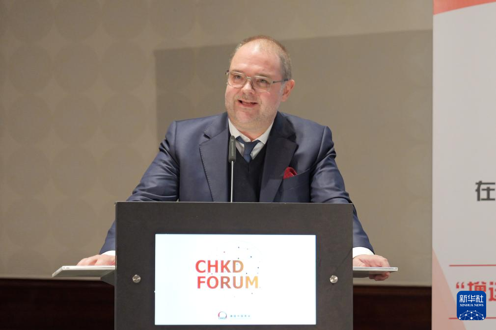 12月5日,德國聯(lián)邦勞動及社會事務(wù)部國際勞動及社會政策司司長卡斯頓·施滕德爾在柏林舉行的德國中國商會2024年度論壇上發(fā)表講話。新華社記者 邰思聰 攝