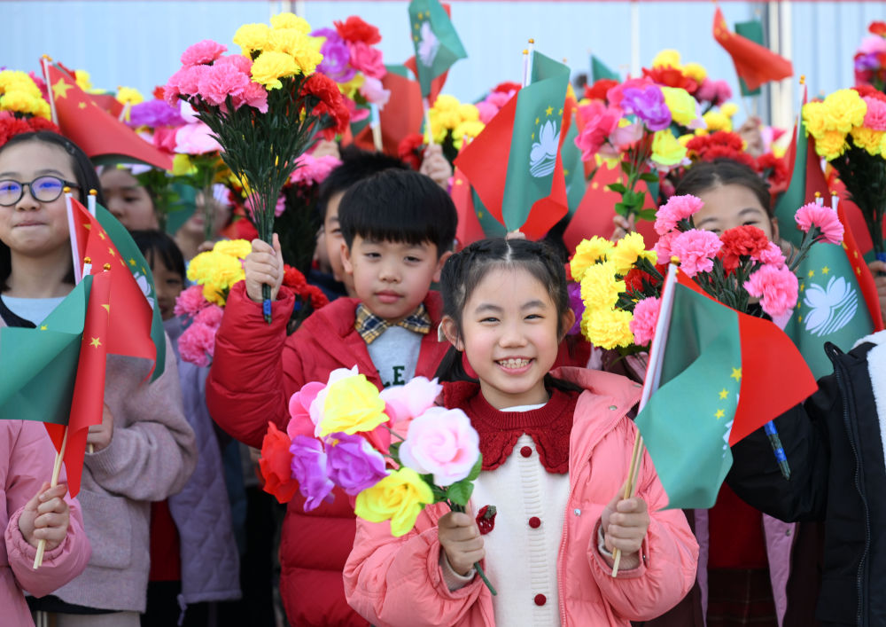 12月18日下午,中共中央總書記、國(guó)家主席、中央軍委主席習(xí)近平乘專機(jī)抵達(dá)澳門,出席將于20日舉行的慶祝澳門回歸祖國(guó)25周年大會(huì)暨澳門特別行政區(qū)第六屆政府就職典禮,并視察澳門。這是歡迎人群。新華社記者 謝環(huán)馳 攝