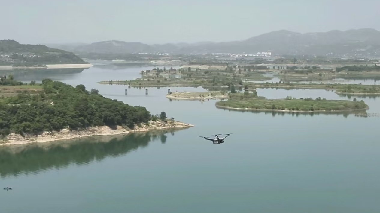 無人機(jī)在丹江口庫區(qū)鄖陽段開展巡庫工作(央廣網(wǎng)發(fā) 十堰市鄖陽區(qū)委宣傳部供圖)
