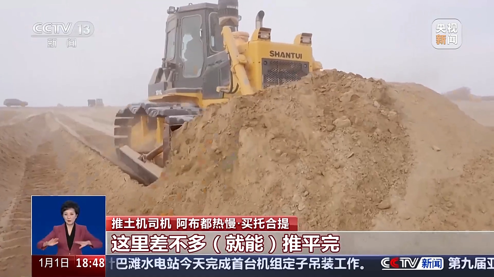 總臺(tái)記者 高鵬飛:這里是塔克拉瑪干沙漠南緣的和田于田縣,這兩天沙漠里面迎來了一場(chǎng)降雪,這會(huì)氣溫在零下10℃左右,非常寒冷,但是,在我旁邊就是一處熱火朝天的沙漠治沙現(xiàn)場(chǎng)。