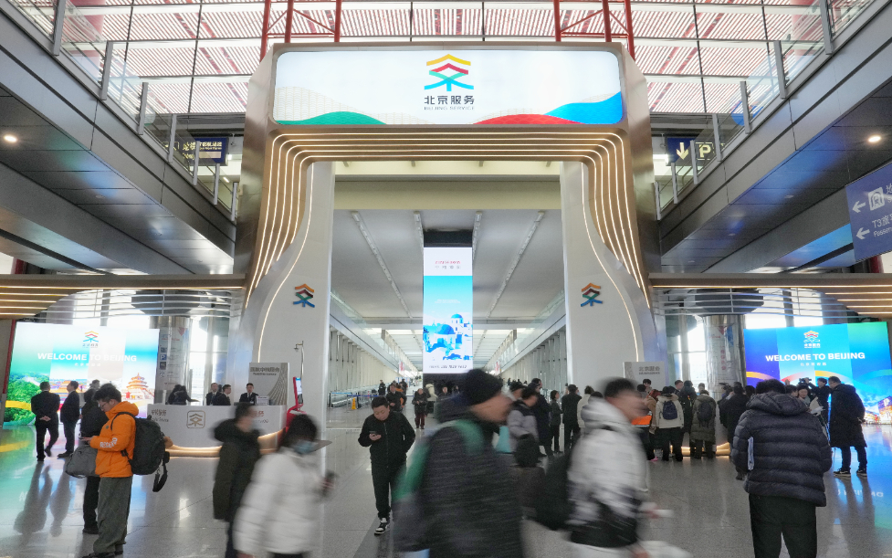 圖為2025年1月8日,在北京首都國(guó)際機(jī)場(chǎng)T3航站樓拍攝的“北京服務(wù)”機(jī)場(chǎng)服務(wù)點(diǎn)。從1月1日起,北京在首都國(guó)際機(jī)場(chǎng)和大興國(guó)際機(jī)場(chǎng)的國(guó)際到達(dá)出口設(shè)立“北京服務(wù)”機(jī)場(chǎng)服務(wù)點(diǎn),為來(lái)華、來(lái)京外籍人士提供金融、通訊、交通、文旅等四個(gè)主題的20余項(xiàng)高頻服務(wù),便利八方來(lái)客暢游中國(guó)。新華社發(fā) (鞠煥宗攝)
