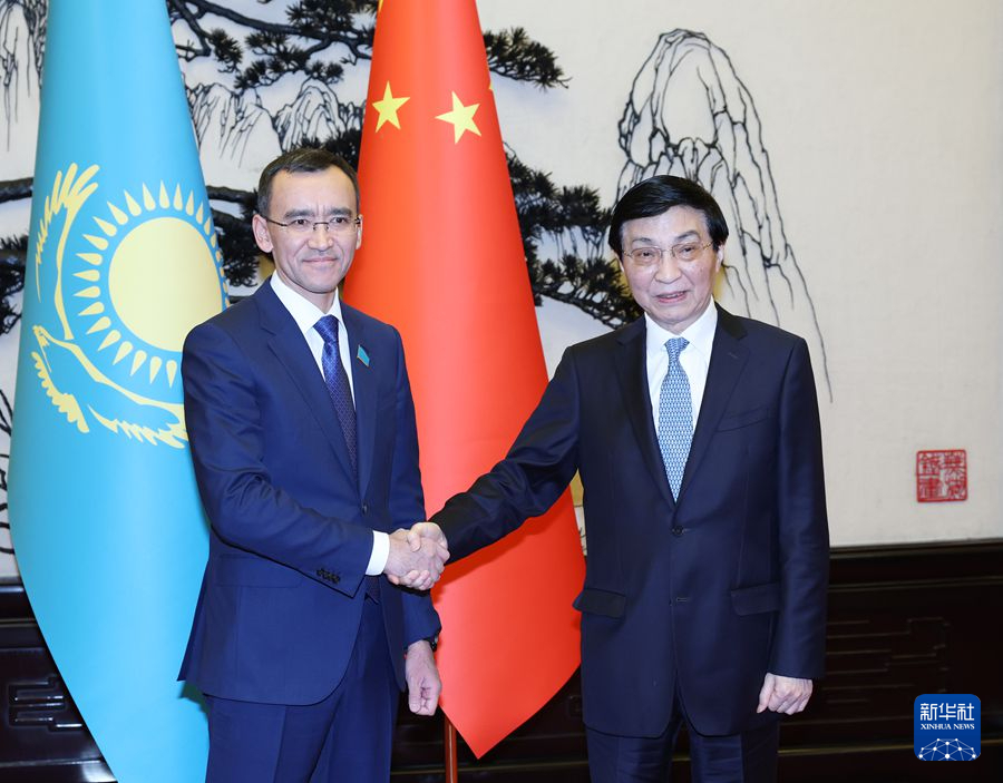 全國政協(xié)主席王滬寧13日在京會見哈薩克斯坦議會上院議長阿希姆巴耶夫。