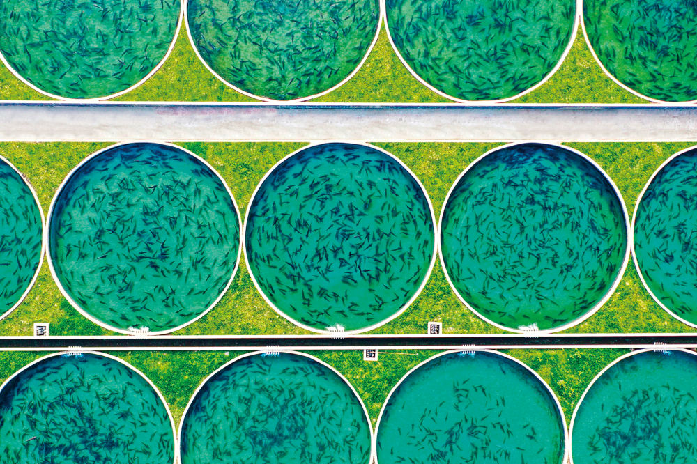 在四川省天全水產(chǎn)現(xiàn)代農(nóng)業(yè)園內(nèi),上百個(gè)圓形流水魚池依河而建。圖片由天全縣委宣傳部提供。