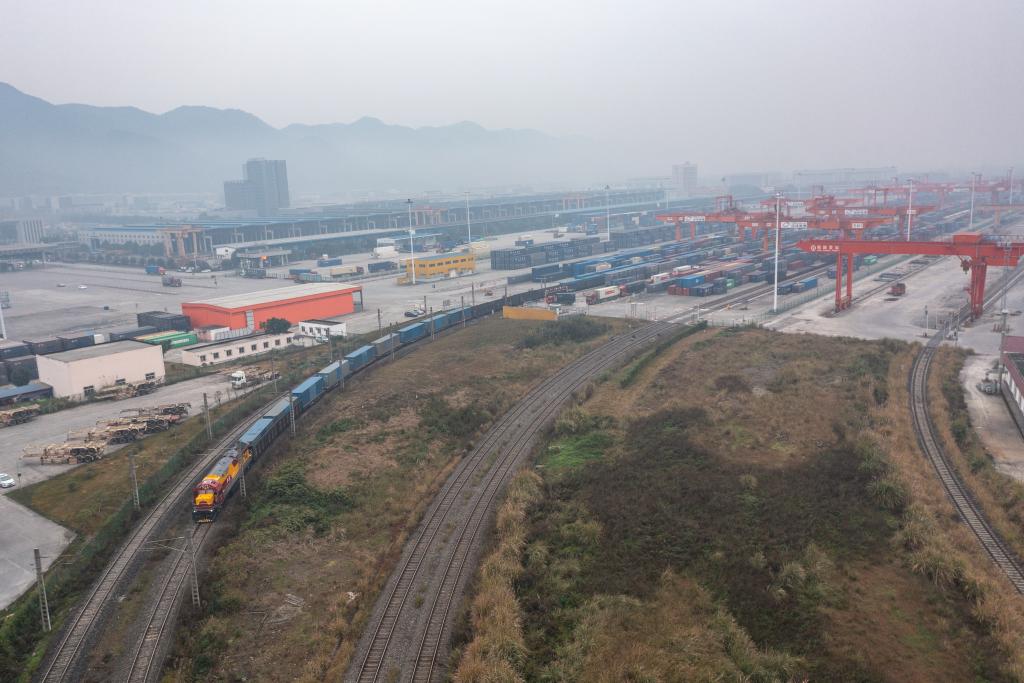 1月17日,一列滿載糖果等歐洲商品的中歐班列年貨專列順利抵達(dá)重慶團(tuán)結(jié)村中心站。新華社記者 黃偉 攝