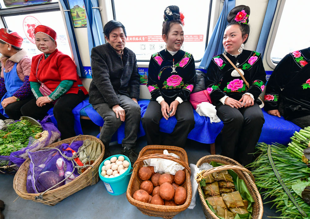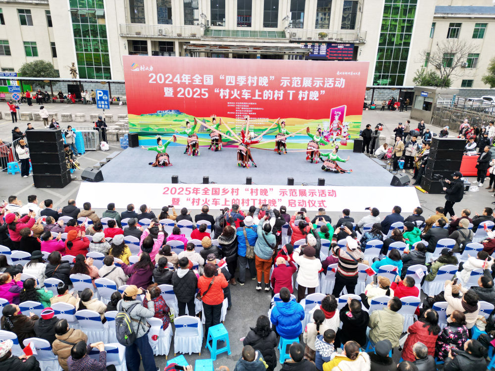 新鮮的農(nóng)產(chǎn)品、喜慶的車廂、特色的民族歌舞、精美的非遺展示……1月18日,2025年全國鄉(xiāng)村“村晚”示范展示活動暨“村火車上的村T村晚”啟動儀式,在貴陽開往玉屏的5640次“慢火車”上舉行。