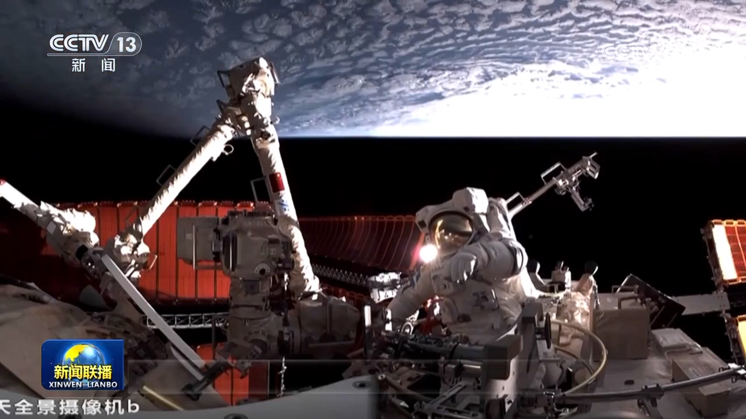 在空間站機(jī)械臂和地面科研人員的配合支持下,航天員乘組完成了空間站空間碎片防護(hù)裝置安裝、艙外設(shè)備設(shè)施巡檢等任務(wù)。今天1時(shí)12分,經(jīng)過約8.5小時(shí)的出艙活動(dòng),兩名出艙航天員安全返回問天實(shí)驗(yàn)艙。