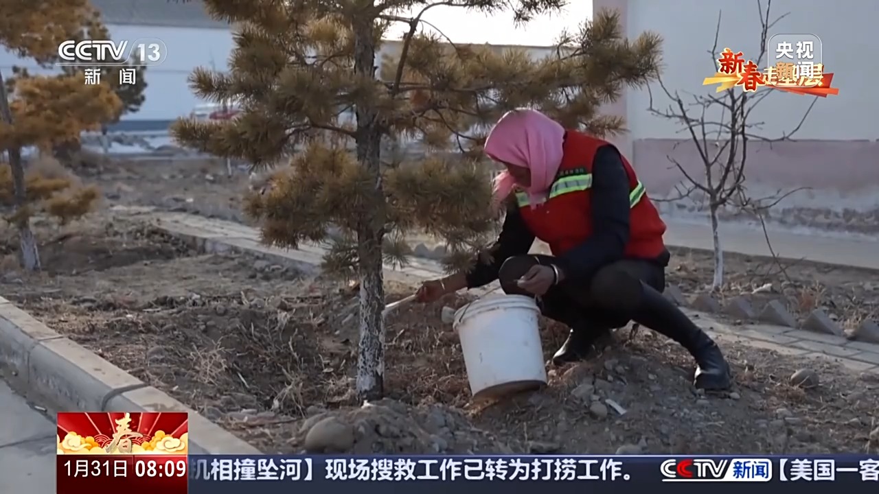 氣候惡劣、基礎(chǔ)設(shè)施薄弱、產(chǎn)業(yè)還未形成。面對(duì)這樣的困難,村干部們首先要解決的就是讓大家看到希望,能夠有事干、有錢(qián)掙、有奔頭。當(dāng)務(wù)之急是先防風(fēng)固沙、植樹(shù)造林,打好產(chǎn)業(yè)基礎(chǔ),避免群眾搬下來(lái)的生活再被風(fēng)沙裹挾。于是,每年的春秋兩季,縣上、鎮(zhèn)上的黨員干部、志愿者和村民就在移民點(diǎn)義務(wù)植樹(shù)。隨著“三北”六期林草工程項(xiàng)目陸續(xù)推開(kāi),村民還可以通過(guò)治沙造林務(wù)工,增加收入。2017年剛搬來(lái)時(shí),移民片區(qū)還只有零星的樹(shù)木;到2024年秋天,已經(jīng)有了各類(lèi)苗木超過(guò)220萬(wàn)株。