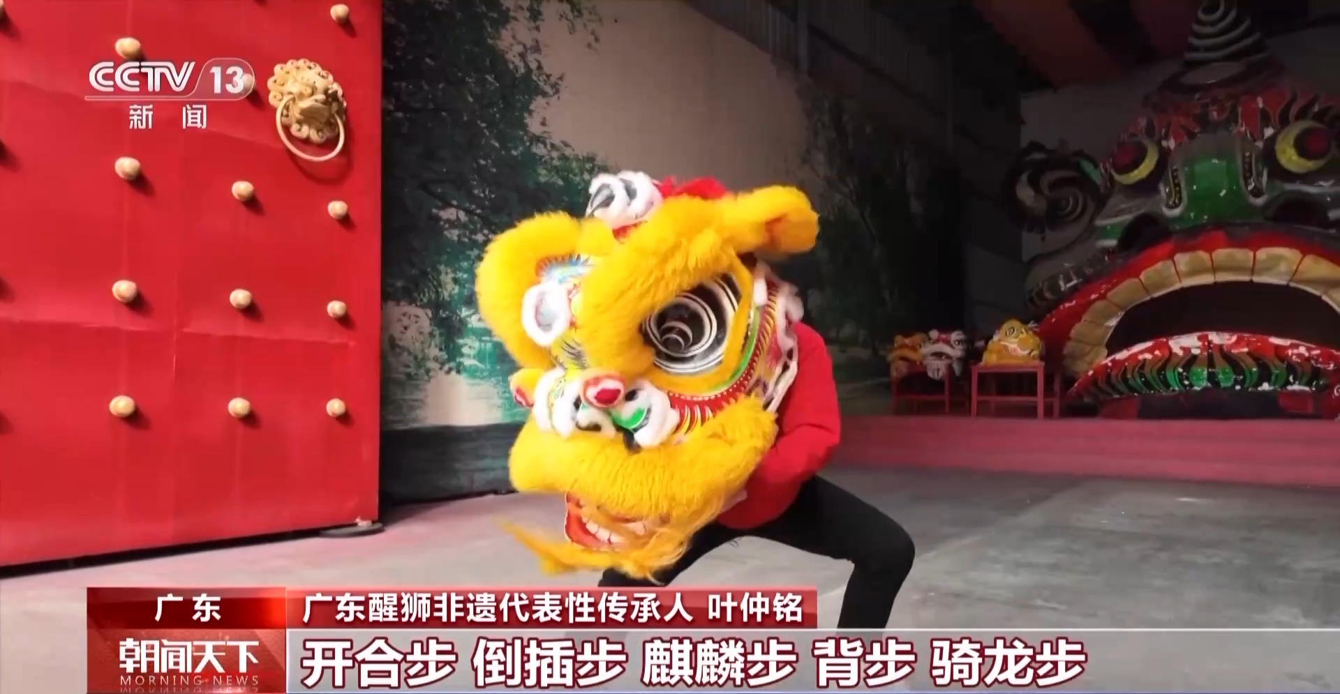 廣東醒獅非遺代表性傳承人 葉仲銘:南獅的步行步法全部是來源于武術的步行步法。開合步、倒插步、麒麟步、背步、騎龍步、虛步、吊馬、金雞獨立步等等,都會出現(xiàn)在舞獅當中。梅花樁也是一種舞獅當中的陣法,當中有河流有山,其實是給人一種啟發(fā),要勇往直前,勇于承擔責任,繼續(xù)為美好明天出發(fā)。
