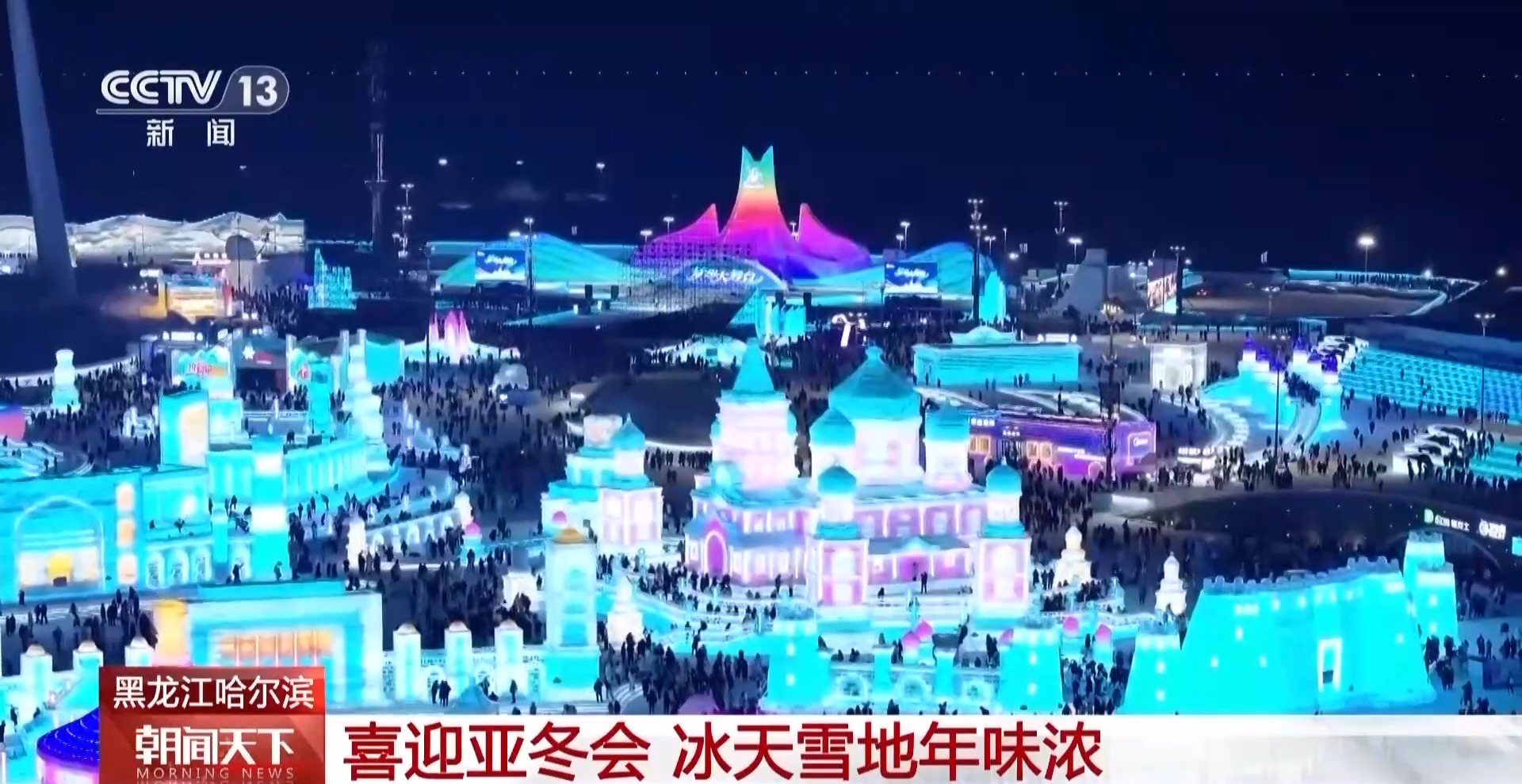 總臺記者 任秋宇:歡迎大家來到第二十六屆哈爾濱冰雪大世界,當(dāng)夜幕降臨,燈光點(diǎn)亮,整個(gè)冰雪大世界變得是如夢如幻,很多人來到這里會看到這八個(gè)大字“冰雪同夢,亞洲同心”,這是哈爾濱2025年第九屆亞冬會的主題口號,同樣也是今年哈爾濱冰雪大世界的設(shè)計(jì)主題。
