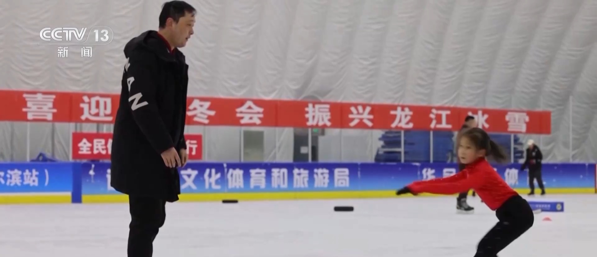 熱鬧的地方可不只在冰雪大世界,在一家冰上運動氣膜館,雖然已經(jīng)是夜晚,但是館內(nèi)依舊人聲鼎沸,在公益免費的時段,附近的居民群眾都可以來到這里滑冰、打冰球。這里還會安排學(xué)校的冰雪運動培訓(xùn)課程,孩子們在教練的指導(dǎo)下認真學(xué)習滑冰技巧。同時,這里還經(jīng)常舉辦夜間冰雪運動賽事,吸引眾多冰雪運動愛好者參與。