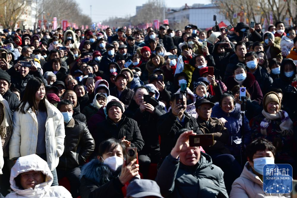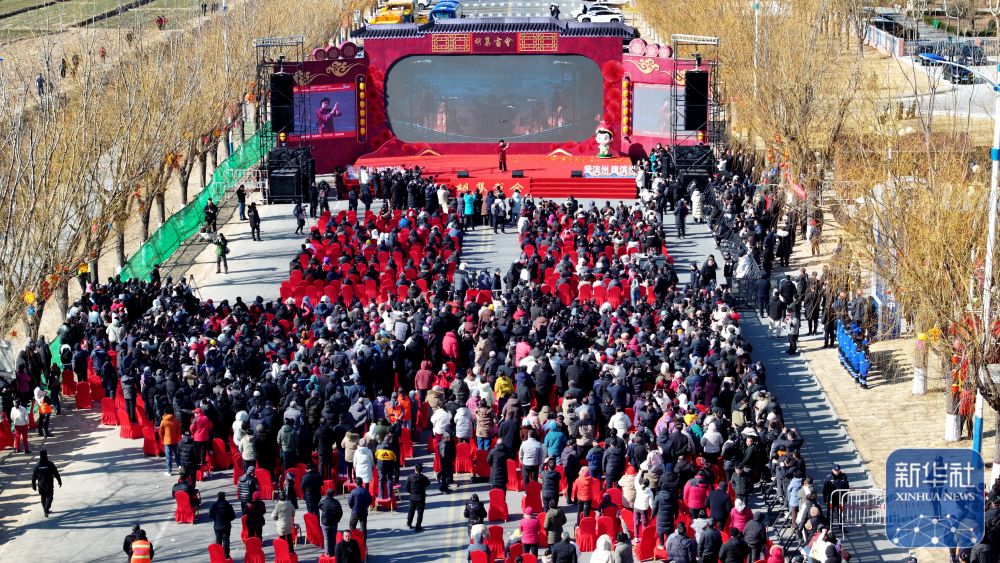 2月9日,觀眾在觀看中國(guó)曲協(xié)“送歡笑到基層”走進(jìn)惠民專場(chǎng)演出(無(wú)人機(jī)照片)。