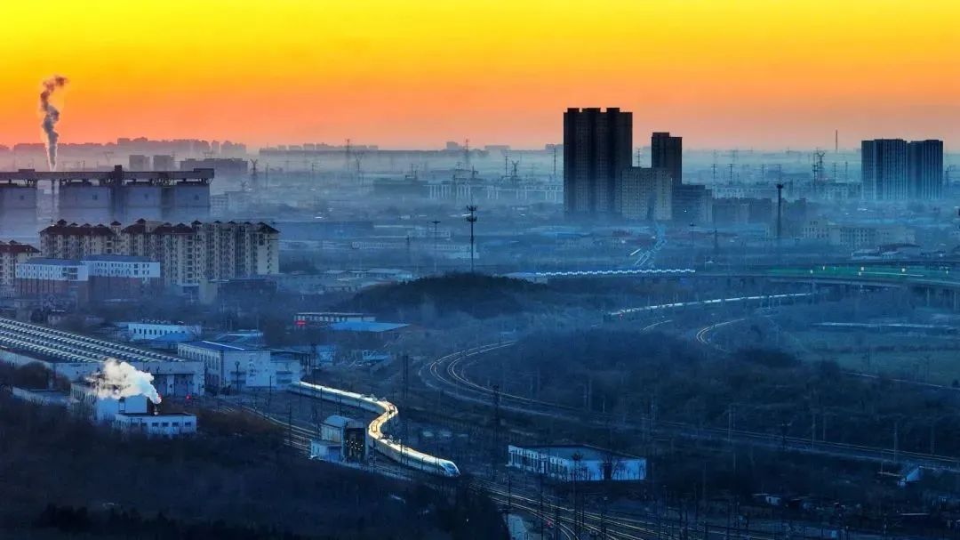 當(dāng)晨曦的第一縷陽光穿透薄霧,金色的陽光灑在蜿蜒伸展的鐵路線上,沿途的風(fēng)景如畫卷般緩緩展開。