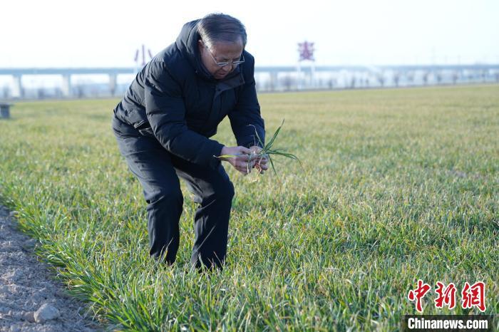 2月16日,茹振鋼在麥田里察看苗情?!≈行律缬浾?闞力 攝