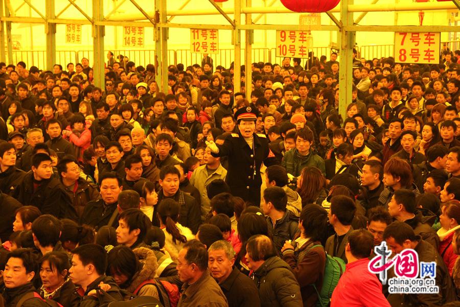 2010年春運,旅客在南昌站風(fēng)雨棚內(nèi)候車。中國網(wǎng)發(fā) 南鐵供圖