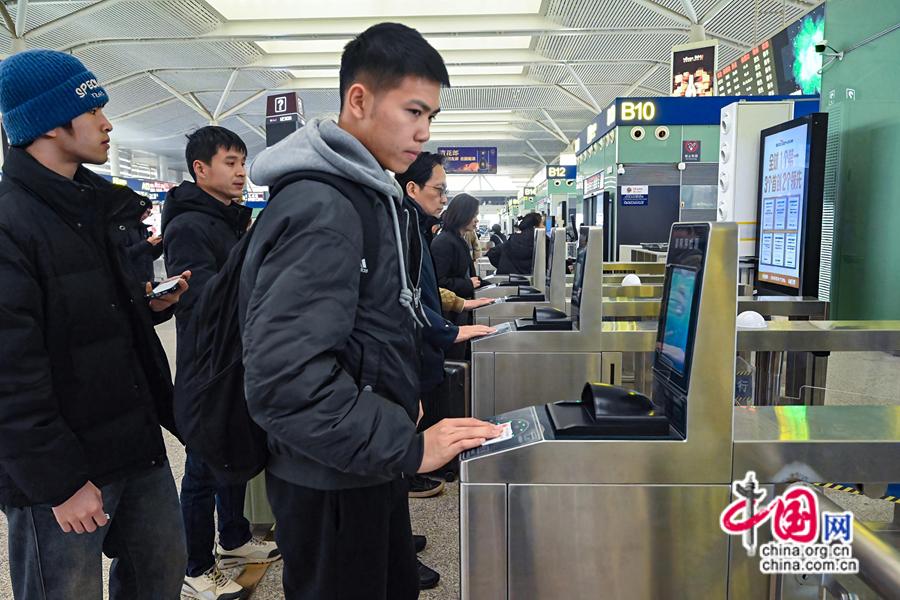 2025年春運期間,旅客南昌西站候車廳刷身份證驗票。中國網(wǎng)發(fā) 黃浩/攝