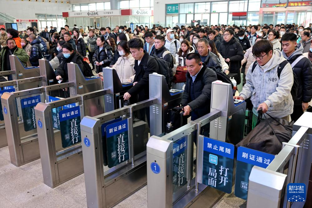 圖為2月22日,旅客在山東棗莊站通過閘機(jī)檢票進(jìn)站。