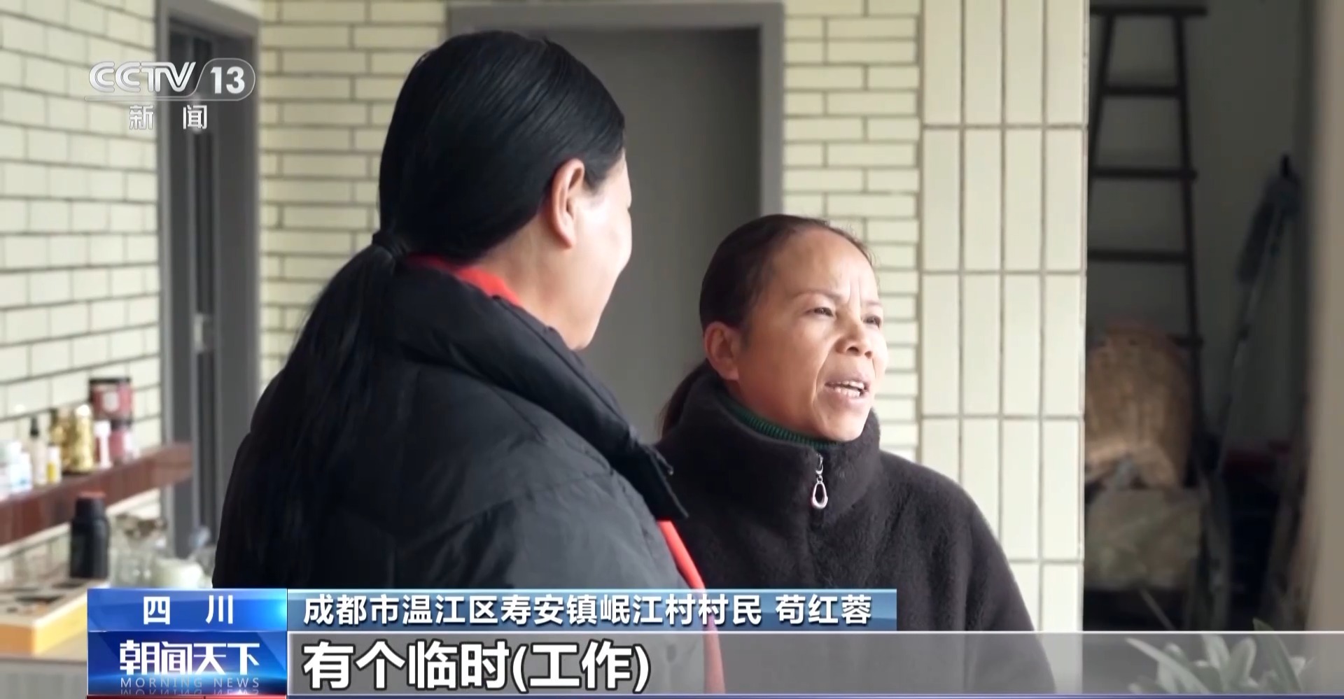 成都市溫江區(qū)壽安鎮(zhèn)岷江村村民 茍紅蓉:讓我們這些在家里照顧老人的,有個臨時工作,有點兒收入。每天在家里,除了地頭和照顧老人,好多時候也沒有啥事了。