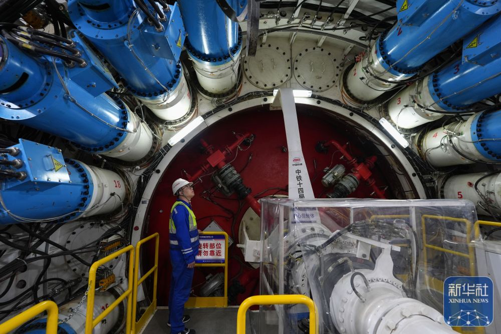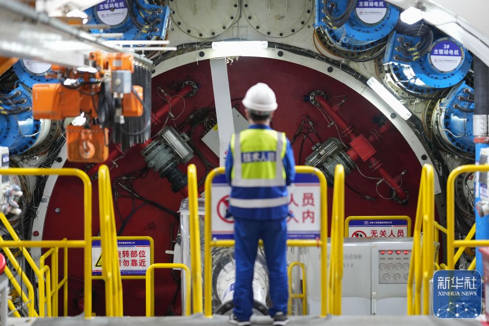 2月25日,中鐵十四局技術(shù)人員在甬舟鐵路金塘海底隧道“甬舟號”盾構(gòu)機內(nèi)關(guān)注設備運行情況。