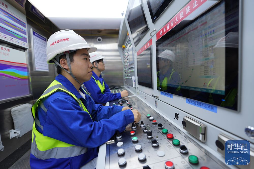 2月25日,中鐵十四局技術(shù)人員在甬舟鐵路金塘海底隧道“甬舟號”盾構(gòu)機操作室關(guān)注設備運行情況。
