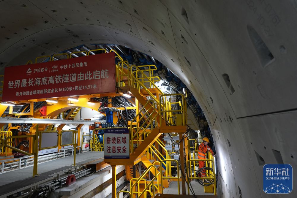 甬舟鐵路金塘海底隧道西起浙江寧波市北侖區(qū),東至舟山市金塘鎮(zhèn),全長16.18公里,是世界最長海底高鐵隧道。