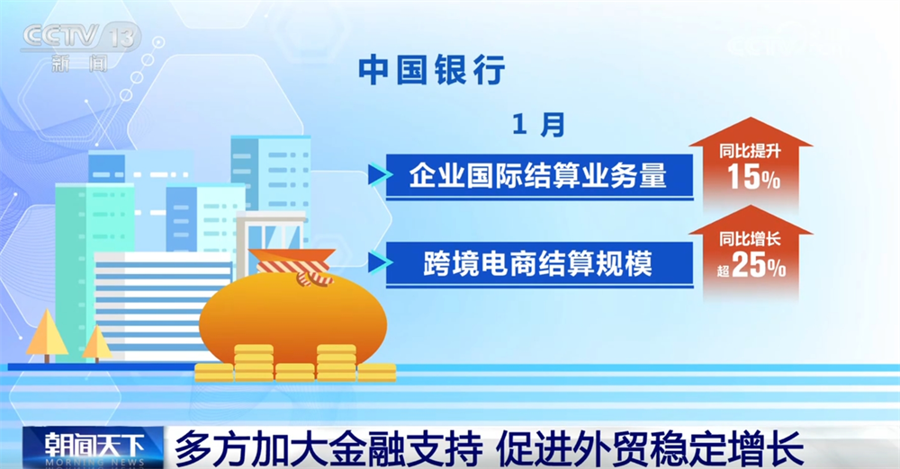 據(jù)了解,今年以來多家銀行持續(xù)加大對外貿(mào)領(lǐng)域的支持。中國進(jìn)出口銀行1月投放外貿(mào)產(chǎn)業(yè)貸款1800億元,同比增長11.79%。中國銀行1月企業(yè)國際結(jié)算業(yè)務(wù)量同比提升15%,跨境電商結(jié)算規(guī)模同比增長超25%。建設(shè)銀行1月末進(jìn)出口貿(mào)易融資余額比去年末增長8.1%。截至2月20日,農(nóng)業(yè)銀行國際收支量同比增長11%。
