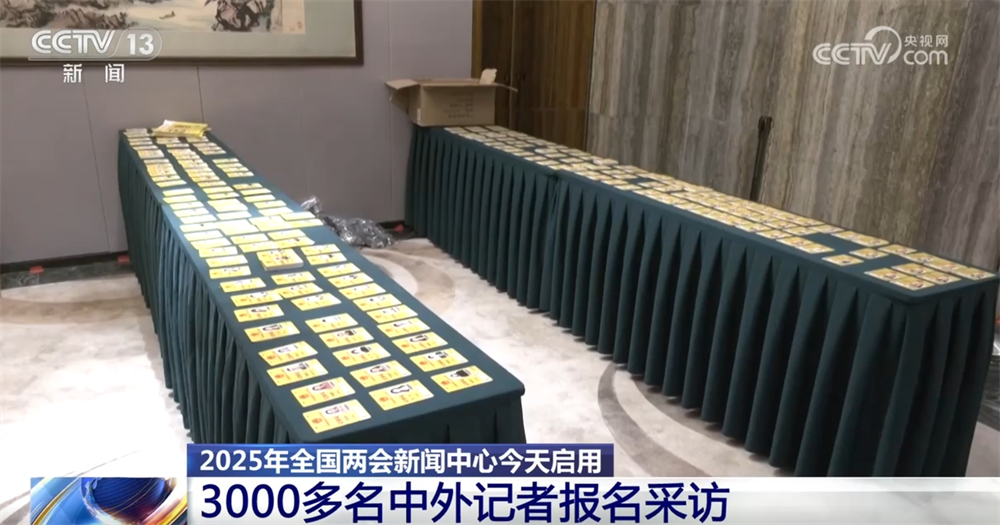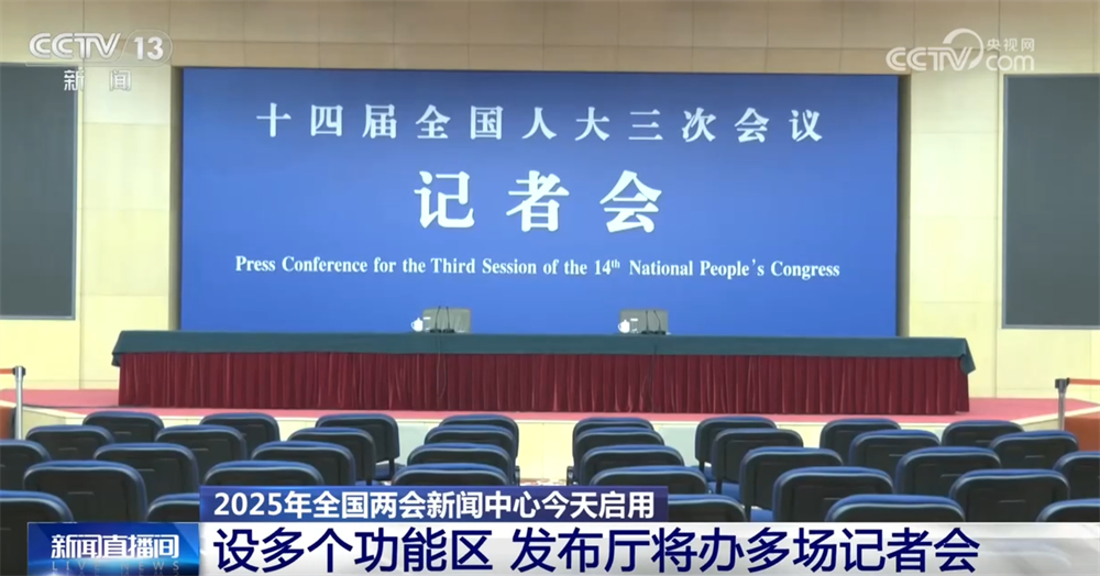與往年相同,今年全國兩會新聞中心設(shè)置了多個功能區(qū),其中,新聞發(fā)布廳和采訪室等已經(jīng)布置完畢。