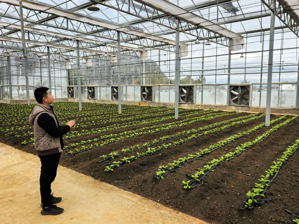在廣西賀州市平桂區(qū)國家現(xiàn)代農(nóng)業(yè)產(chǎn)業(yè)園品種篩選適應(yīng)棚內(nèi),技術(shù)人員陳愈璋輕觸手機(jī),蔬菜大棚的內(nèi)遮陽網(wǎng)緩緩開啟?!霸绱簳r(shí)節(jié)氣溫波動(dòng)較大,有了物聯(lián)網(wǎng)技術(shù),可以隨時(shí)調(diào)整遮陽網(wǎng)開合,效率提高了很多。”陳愈璋說。