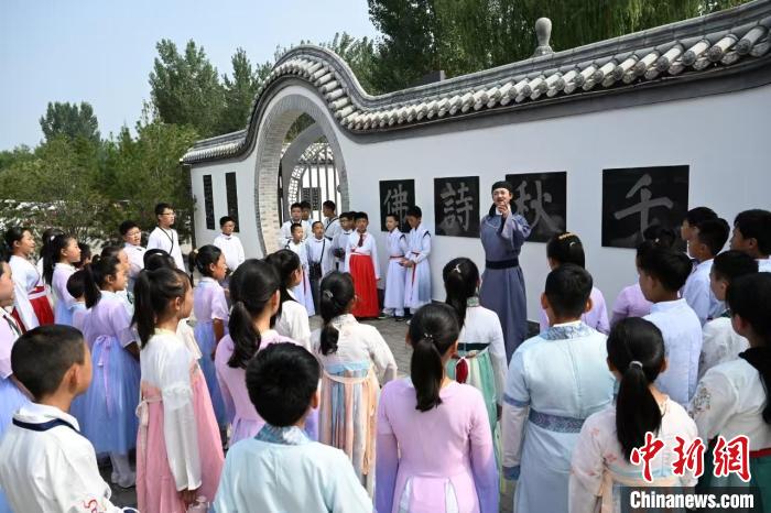 來自省內(nèi)外的學生在王維水墨小鎮(zhèn)參加研學活動。(資料圖片) 吳遵民 攝