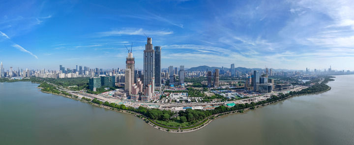 這是建設(shè)中的深圳灣超級(jí)總部基地(2024年10月3日攝,無人機(jī)全景照片)。新華社記者 梁旭 攝