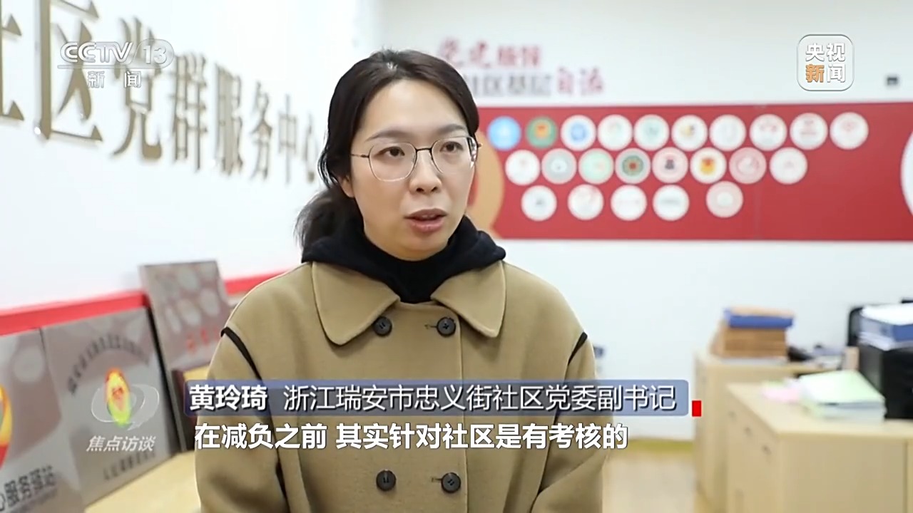 浙江瑞安市忠義街社區(qū)黨委副書記 黃玲琦:在減負(fù)之前,其實針對社區(qū)是有考核的,規(guī)定我們每個月要開展八場活動,不可能一整個月都在那里辦活動不開展日常服務(wù),我只能是有一些活動拿過來湊。要想考核好,只能圍繞著考核細(xì)則轉(zhuǎn),沒辦法。