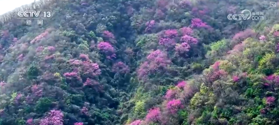 這兩天,在湖北宜都市的群山深處,一片綿延3000多畝的野生巨紫荊群落花開正艷。放眼望去,無邊的粉紫色如同潑灑的顏料,浸染在山巒上,微風(fēng)拂過,花海泛起紫色漣漪。