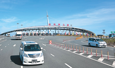 圖為車(chē)輛經(jīng)港珠澳大橋抵達(dá)珠海。中新社記者 陳驥旻攝