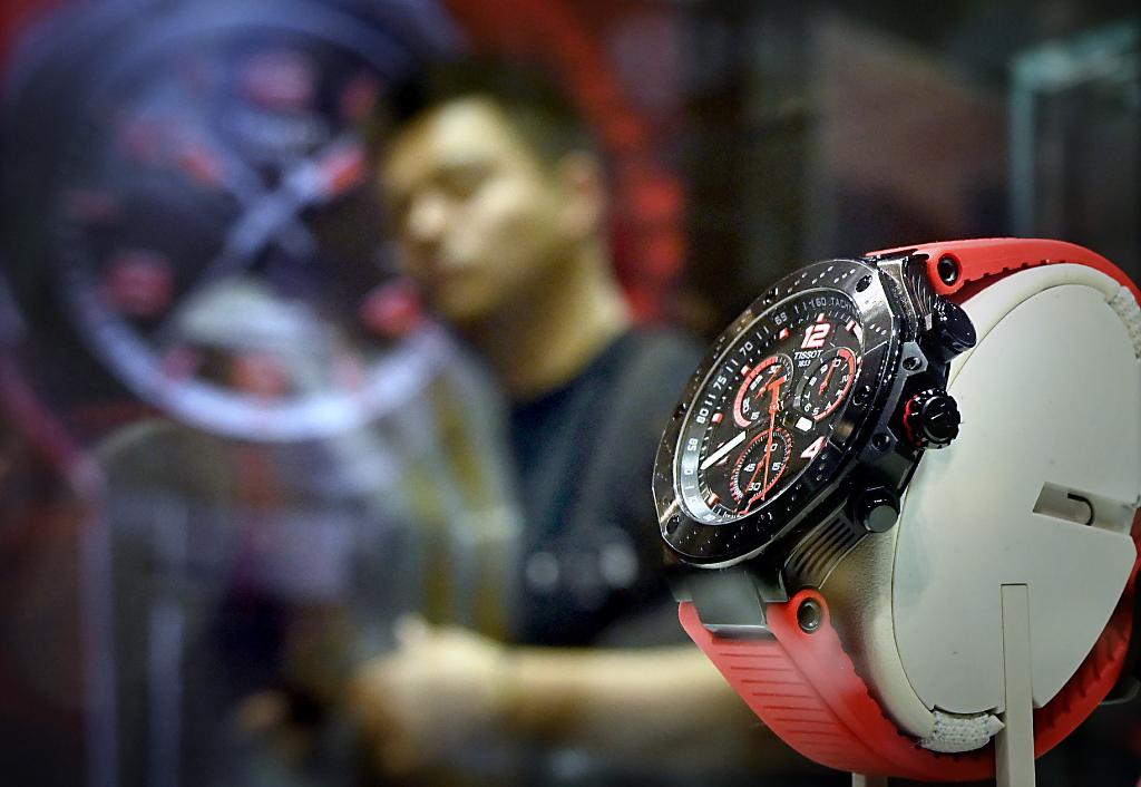 4月13日,消博會5號館精品名表展示區(qū)一角。(王頌 攝)