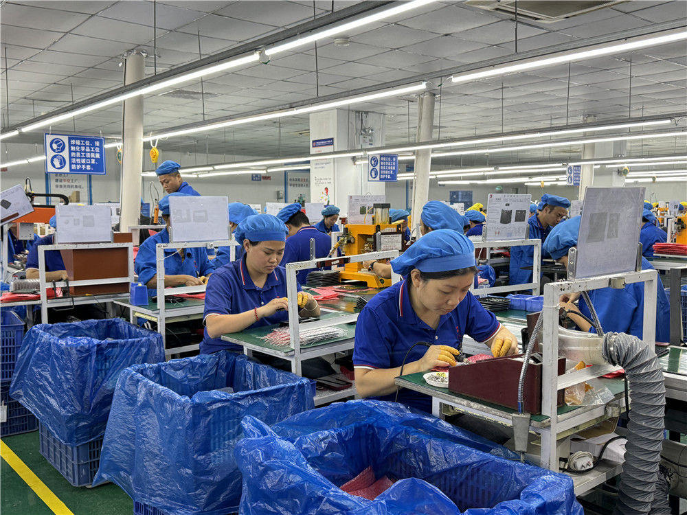 工人在廣西北流泰宏達電子有限公司車間內(nèi)忙碌(2024年12月9日攝)。新華社發(fā)(李洪健 攝)