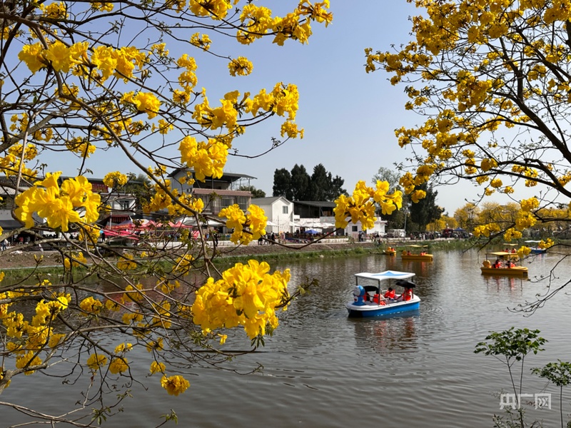 四月芳菲盛,踏青正當(dāng)時(shí)。近日,四川省簡(jiǎn)陽(yáng)市東麓花溪的千畝黃花風(fēng)鈴木迎來(lái)盛花期,金黃花海不僅吸引八方游客紛至沓來(lái),更催生出多元消費(fèi)新場(chǎng)景,讓“鮮花經(jīng)濟(jì)”綻放出獨(dú)特魅力。