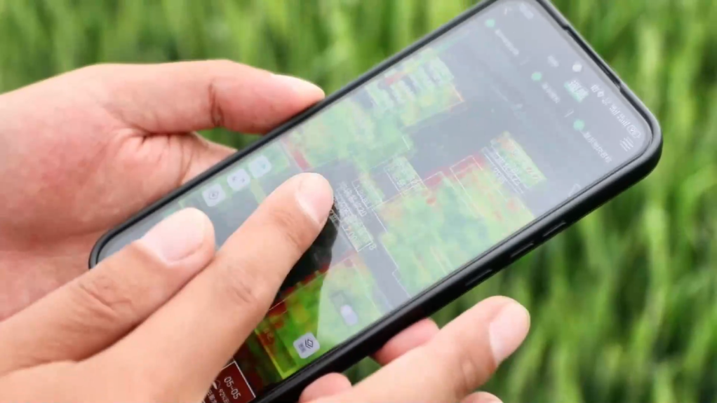 農戶通過AI智慧農業(yè)數字管理平臺管理麥田。新華社記者 張碩 攝