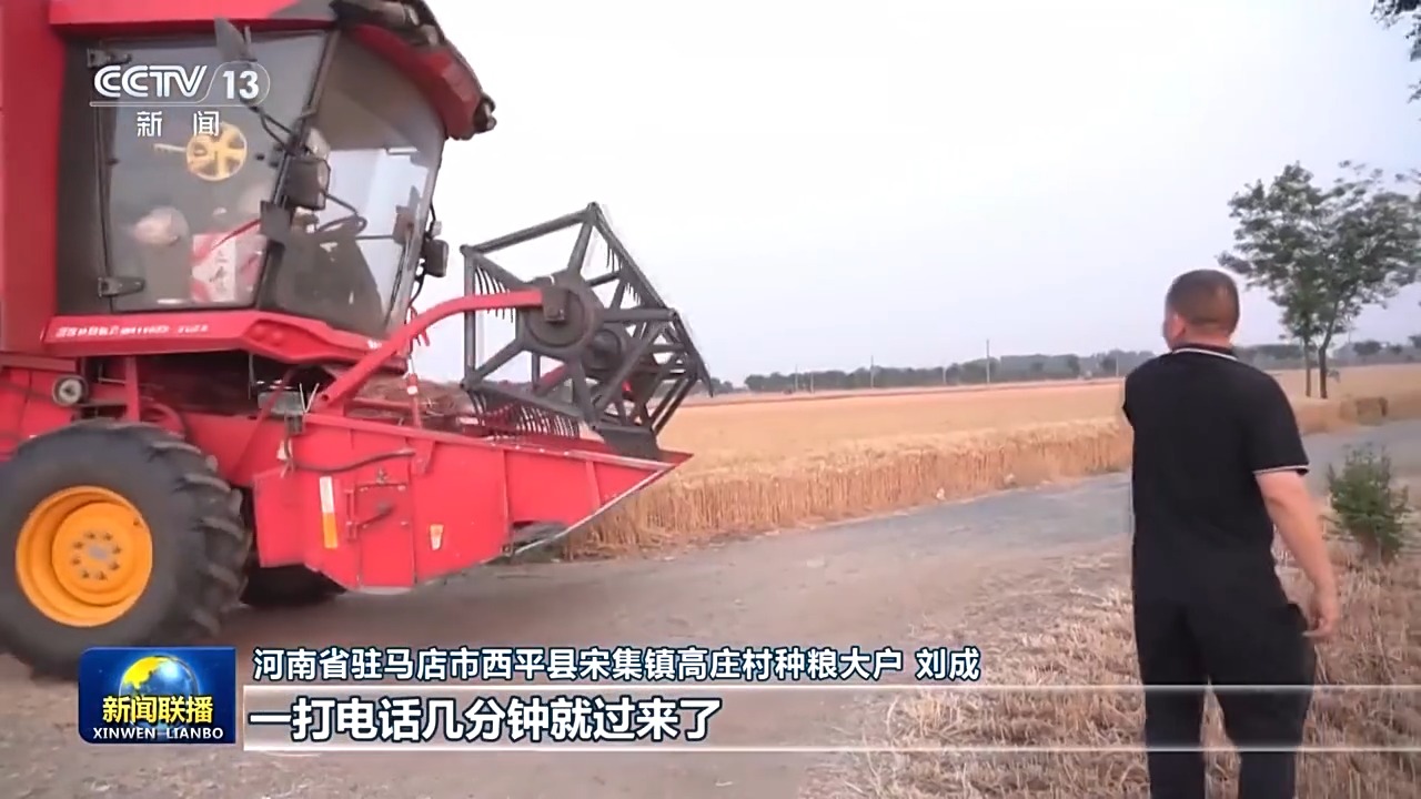 河南省駐馬店市西平縣宋集鎮(zhèn)高莊村種糧大戶 劉成:自己種了有100多畝地,以前叫收割機(jī)都不方便,現(xiàn)在有“農(nóng)機(jī)云”,叫車很方便,哪里車近就叫哪個車,一打電話幾分鐘就過來了。