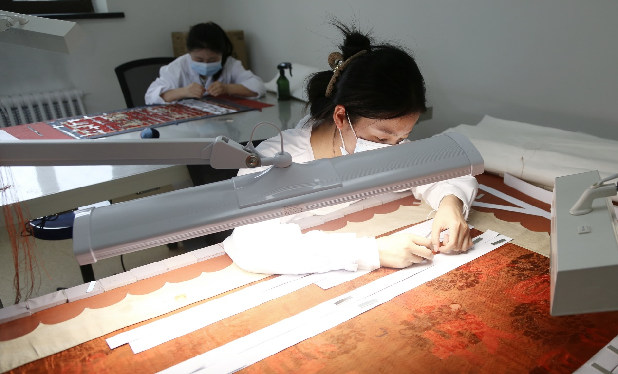 修復(fù)人員正在對(duì)紙質(zhì)文物進(jìn)行修復(fù)