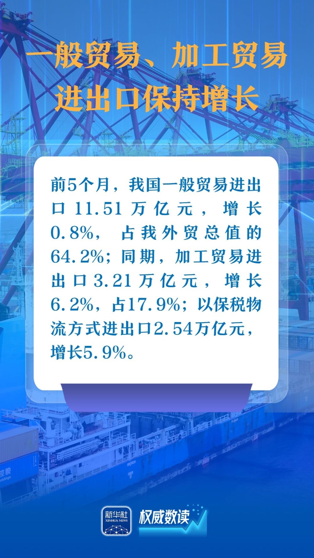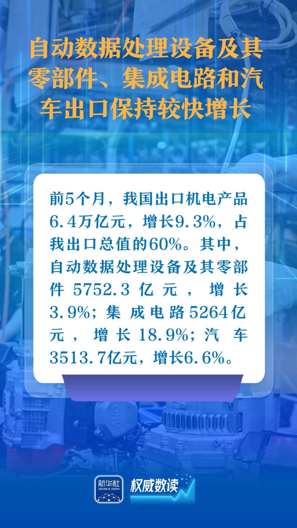 海關(guān)總署9日發(fā)布數(shù)據(jù),今年前5個月,我國貨物貿(mào)易進(jìn)出口總值17.94萬億元人民幣,同比增長2.5%。以下幾組數(shù)據(jù),展示出我國對外貿(mào)易在外部壓力下依然保持較強(qiáng)韌性。