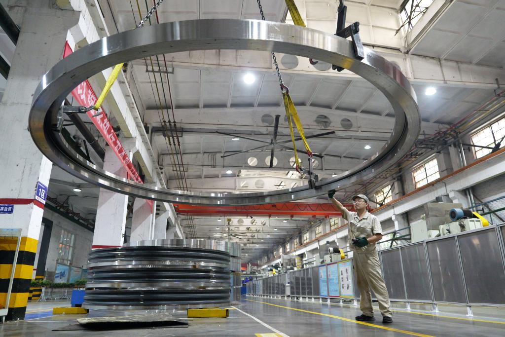 5月22日,工人在洛軸集團風(fēng)電三車間生產(chǎn)線上作業(yè)。新華社記者 李嘉南 攝