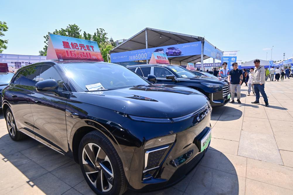 5月3日,消費者在山東省青州市舉辦的汽車·房產(chǎn)家居文化節(jié)上參觀選購展出的汽車。新華社發(fā)(王繼林?jǐn)z)