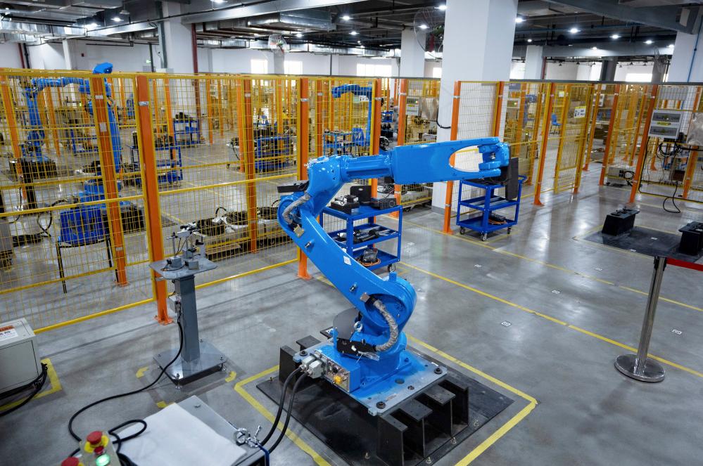 2024年11月13日,在成都卡諾普機器人技術(shù)股份有限公司,工業(yè)機器人在出廠前進行全自動測試。新華社記者 江宏景 攝
