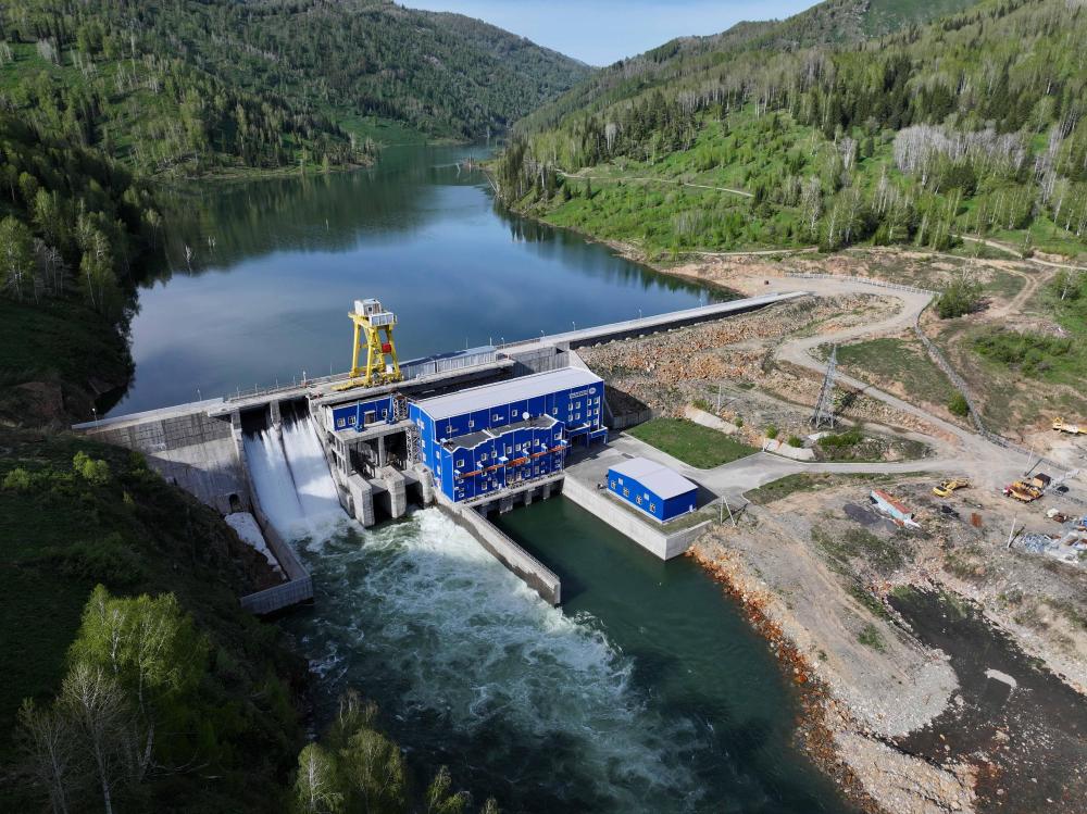 這是2025年5月8日在哈薩克斯坦東哈州拍攝的圖爾古孫水電站(無人機照片)。(圖片來源:新華社)
