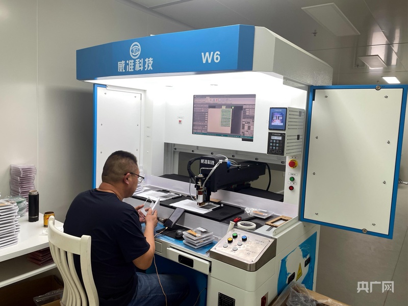 企業(yè)車(chē)間內(nèi)的自動(dòng)點(diǎn)膠機(jī)(央廣網(wǎng)記者 唐磊 攝)