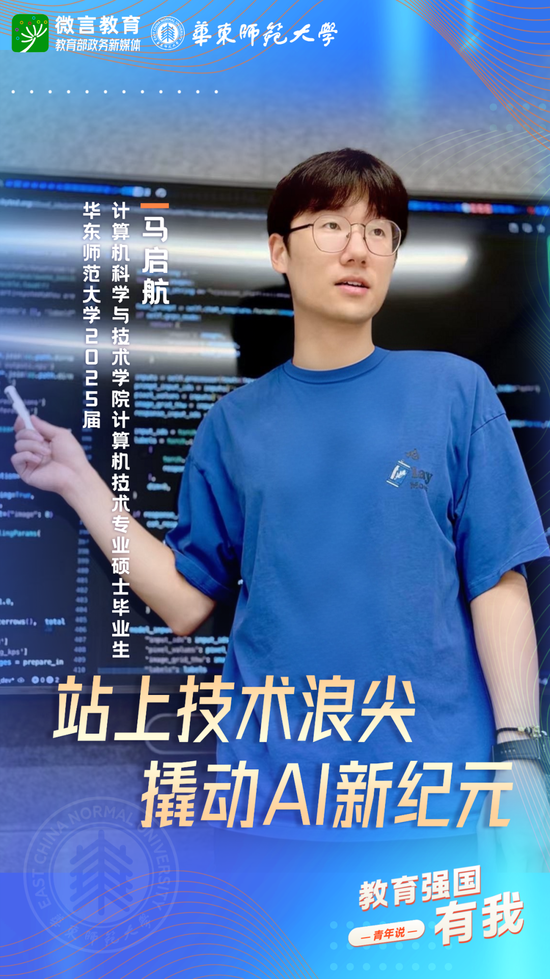 習近平總書記強調,希望廣大青年堅定理想信念,厚植家國情懷,練就過硬本領,發(fā)揚奮斗精神,到祖國和人民最需要的地方發(fā)光發(fā)熱,為中國式現代化建設貢獻青春力量。教育強國建設,青年何為?教育部政務新媒體推出“教育強國,有我!”網絡主題宣傳活動之“青年說(報國篇)”系列,展現青年學子將個人理想融入國家發(fā)展的青春擔當。今天,跟教育小微通過1個視頻和1組海報,一起來看華東師范大學學子如何“向新而行”——